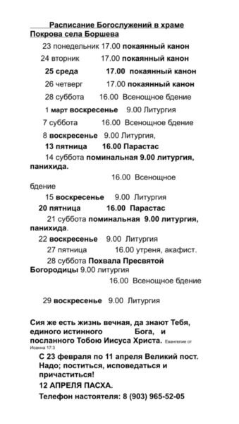 Соборование 27 февраля в 17.00